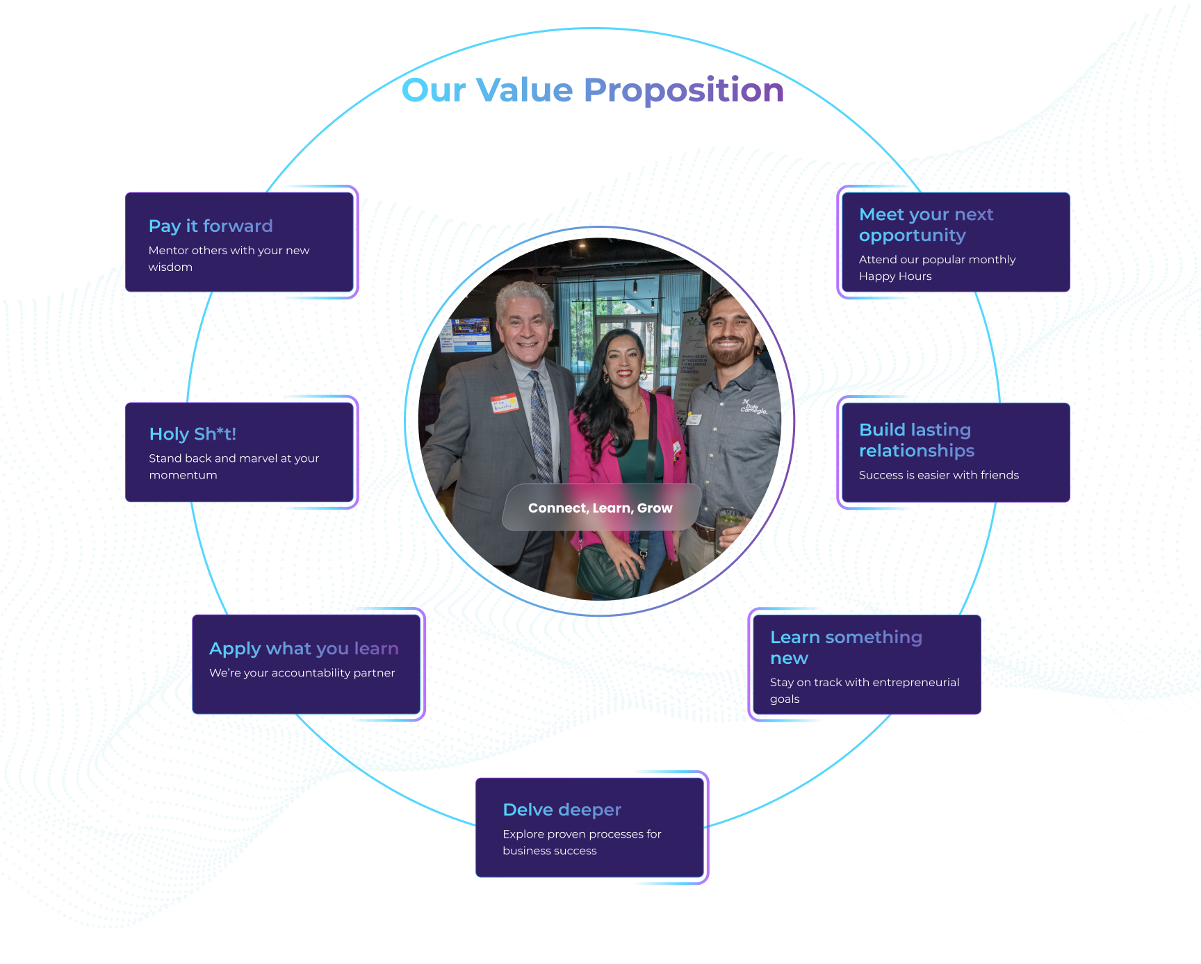 Create Impact, Build Together, Ignite Ideas, Grow Orlando, Share Knowledge, Foster Growth, Drive Progress